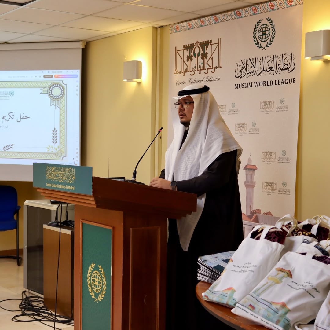 El acto de reconocimiento estuvo presidido por Hussam Siddiq Khoja, Director General de Oficinas y Centros Exteriores de la Liga del Mundo Islámico y director de sus centros en España, quien hizo entrega de los reconocimientos en agradecimiento por su valiosa contribución al éxito de las actividades de Ramadán.