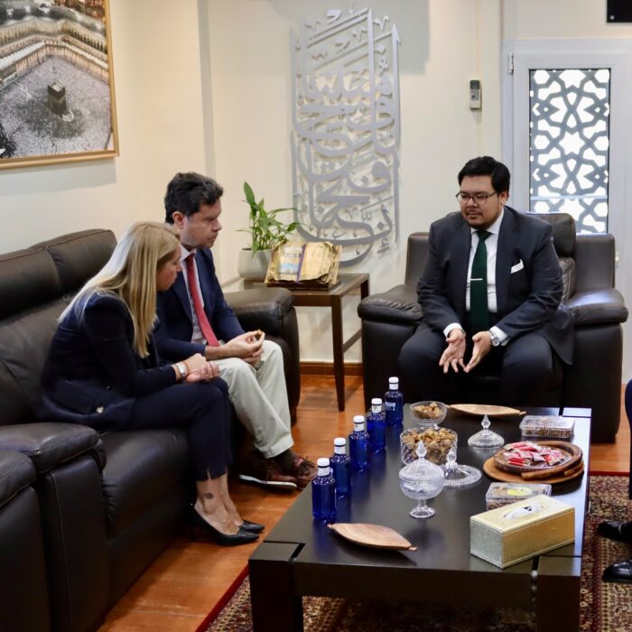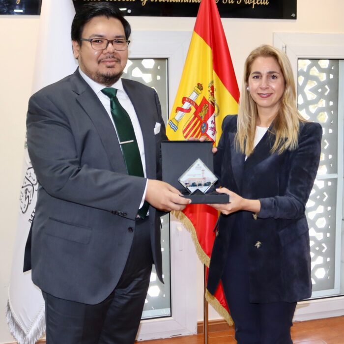 Durante la visita, fue recibida por el director general de los Centros de la Liga del Mundo Islámico en España, Sr. Hussam Siddiq Khoja, junto al responsable de Relaciones públicas del Centro de Madrid.