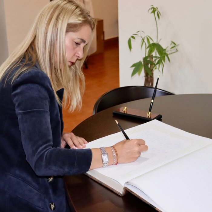 Al finalizar, dejó un mensaje en el libro de visitas y recibió, junto a su equipo, un obsequio institucional como recuerdo de este encuentro. También se tomaron fotografías conmemorativas que reflejan el espíritu de respeto y cooperación mutua.